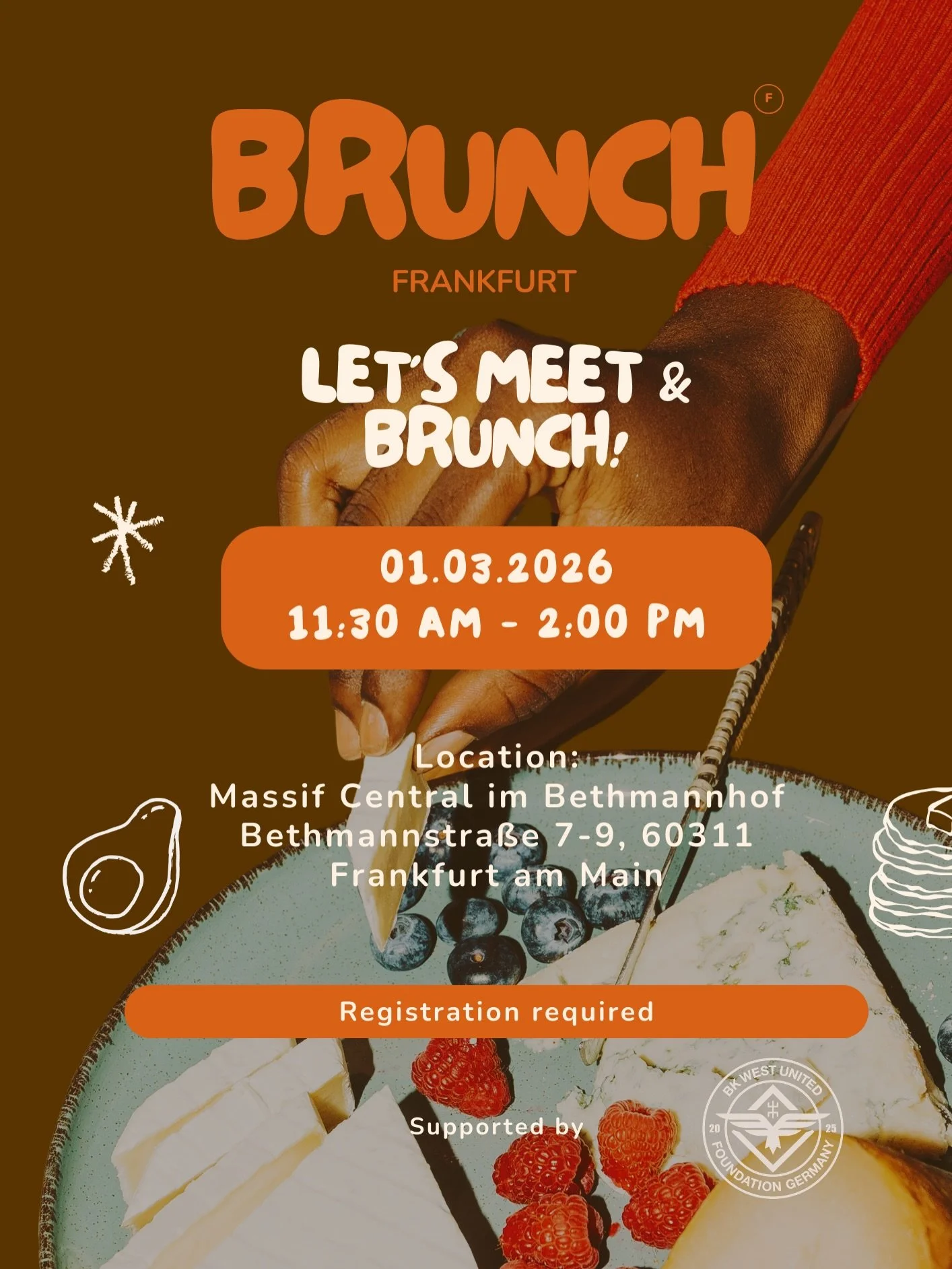 The brunches usually take place once a month. Dates and locations are shared on our social media platforms.